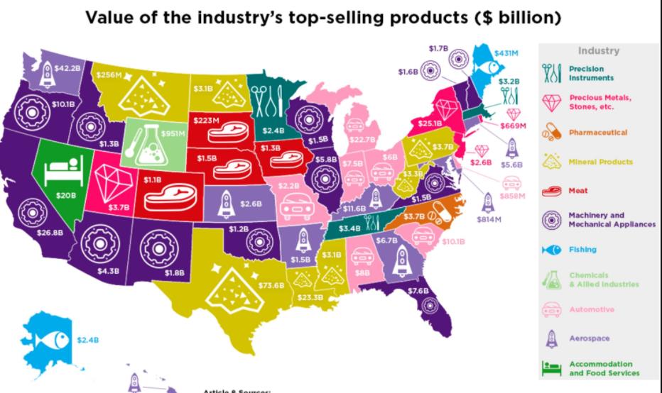 盡管近年來美國鋼鐵行業在全球市場上明顯下滑,但該制造業在多個地區仍然非常重要。美國鋼鐵工業最強的五個州包括:印第安納州、北卡羅來納、德克薩斯州、賓夕法尼亞州、加利福尼亞州。